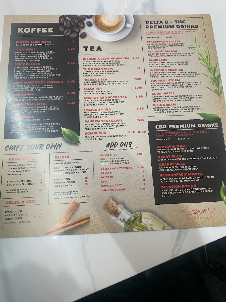Welcome to Insomnia ISG Kava Bar and Lounge, an enchanting haven nestled in Temple Terrace, Florida. This vibrant spot expertly celebrates the rich culture of kava, providing an inviting atmosphere where relaxation meets community. Customers rave about the exceptional service, emphasizing the friendly staff who go above and beyond to enhance your experience. From delightful kava drinks to soothing kratom, the menu is thoughtfully curated, offering both familiar favorites and unique concoctions.